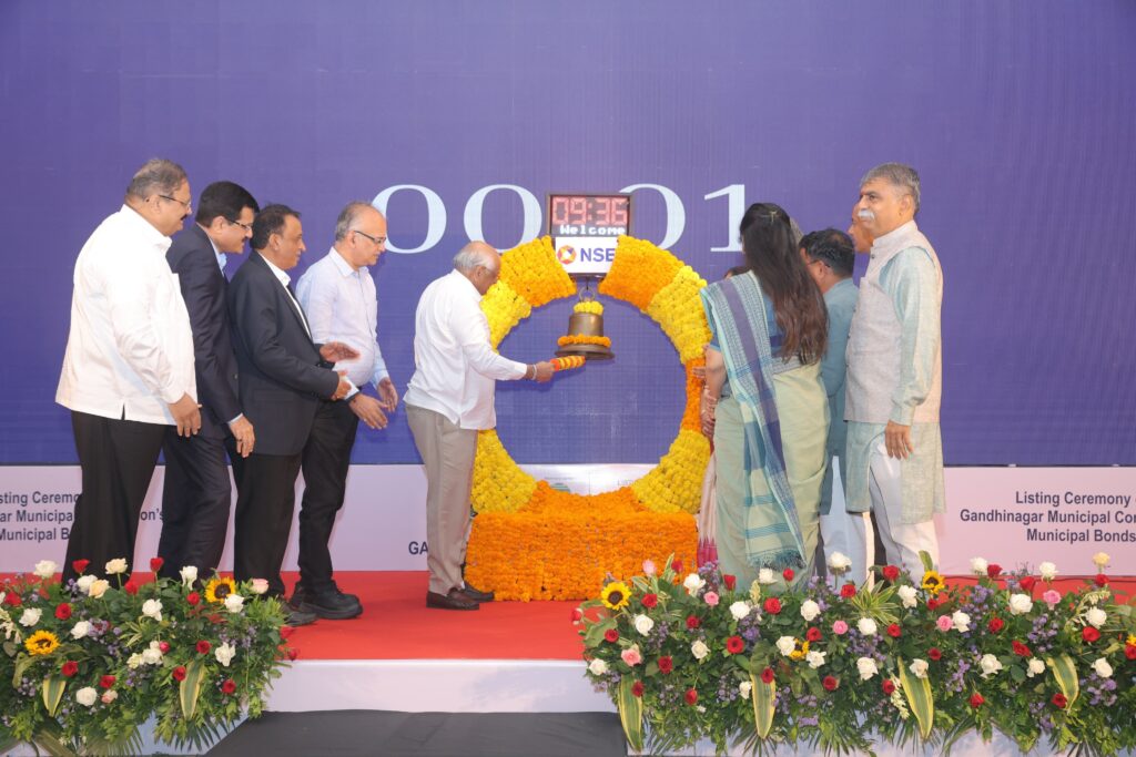 Gandhinagar, June 25:In a landmark step toward financial empowerment and urban development, the Gandhinagar Municipal Corporation (GMC) successfully listed its maiden ₹25 crore municipal bonds on the National Stock Exchange (NSE) today. The listing ceremony, held at the GIFT City Club in Gandhinagar, was graced by Gujarat Chief Minister Bhupendra Patel, Mayor of Gandhinagar Miraben Patel, and other dignitaries.