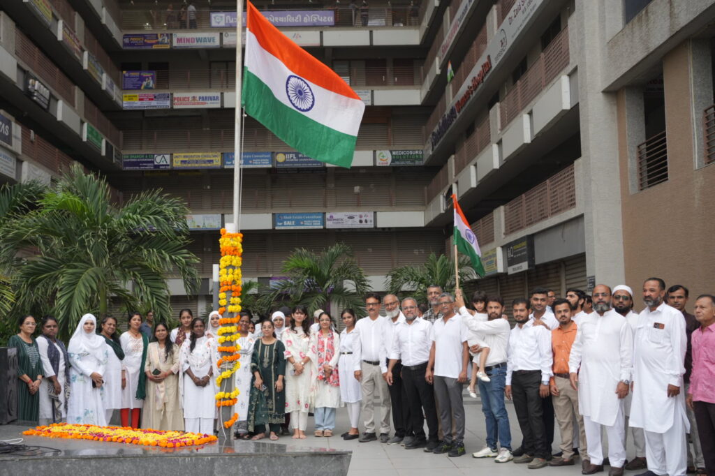 Prism Hospital at the City Gate Complex, New Vasna, turned into a hub of patriotic fervor as the tricolor was unfurled on Independence Day. The ceremony witnessed enthusiastic participation from doctors, nursing staff, the management team, and invited guests.