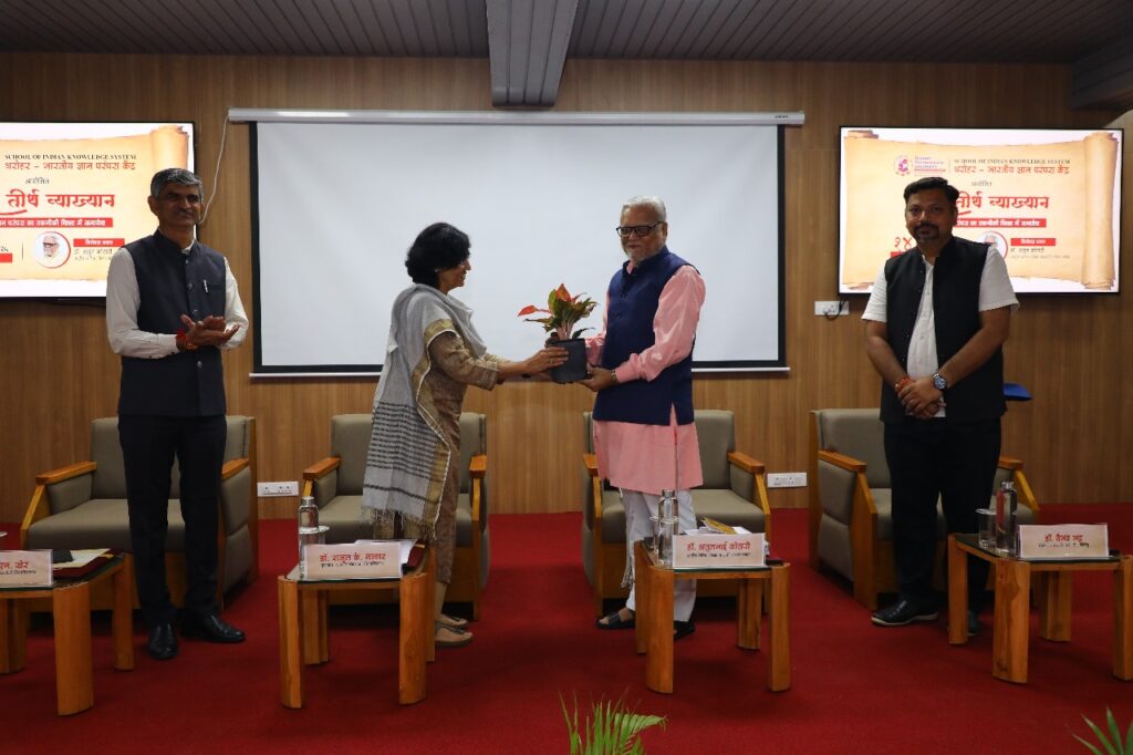 Gujarat Technological University (GTU) organized the Bharat Tirth Lecture at its Chandkheda campus, focusing on the theme “Integration of Indian Knowledge System in Technical Education.” The event, held under Dharohar – Bharatiye Gyan Parampara Kendra, witnessed active participation from faculty, staff, and students.
