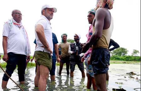 The yatra, aimed at highlighting alleged “vote theft” and democratic concerns, has now turned into a show of opposition strength in Bihar. While passing through Kursela, LoP Rahul Gandhi made an unscheduled stop at Makhana fields near Simaria. He interacted directly with farmers, seeking to understand the cultivation process, yields, and export demand of Bihar’s famous Makhana (fox nut). Farmers briefed him on the challenges they face, including exploitation by middlemen and a lack of fair pricing. LoP Rahul Gandhi also discussed how Makhana, sold locally at Rs 700 per kg, is exported abroad, including to the US, at several times the price, highlighting the absence of government support for farmers. Bihar Congress President Rajesh Ram said that farmers here have been surrounded by middlemen, and despite the high global demand for Makhana, fishermen and farmers are not getting a fair price.