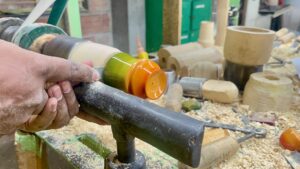 The products blend eco-friendly materials, lacquered wooden finishes, and modern aesthetics, resulting in designs that are sustainable, functional, and culturally authentic. In the “Craft + Tech” segment, artisans experimented with simple electronic elements such as light, sound, and motion to create interactive experiences without compromising the handmade charm.