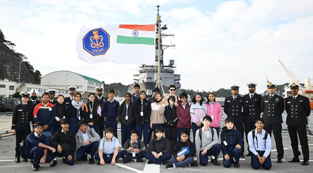 Tokyo, Oct 29: In a gesture reinforcing cultural ties between India and Japan, a group of schoolchildren visited Indian Naval Ship (INS) Sahyadri during its port call at Japan’s Yokosuka, learning about India’s rich maritime heritage and advanced indigenous capabilities.