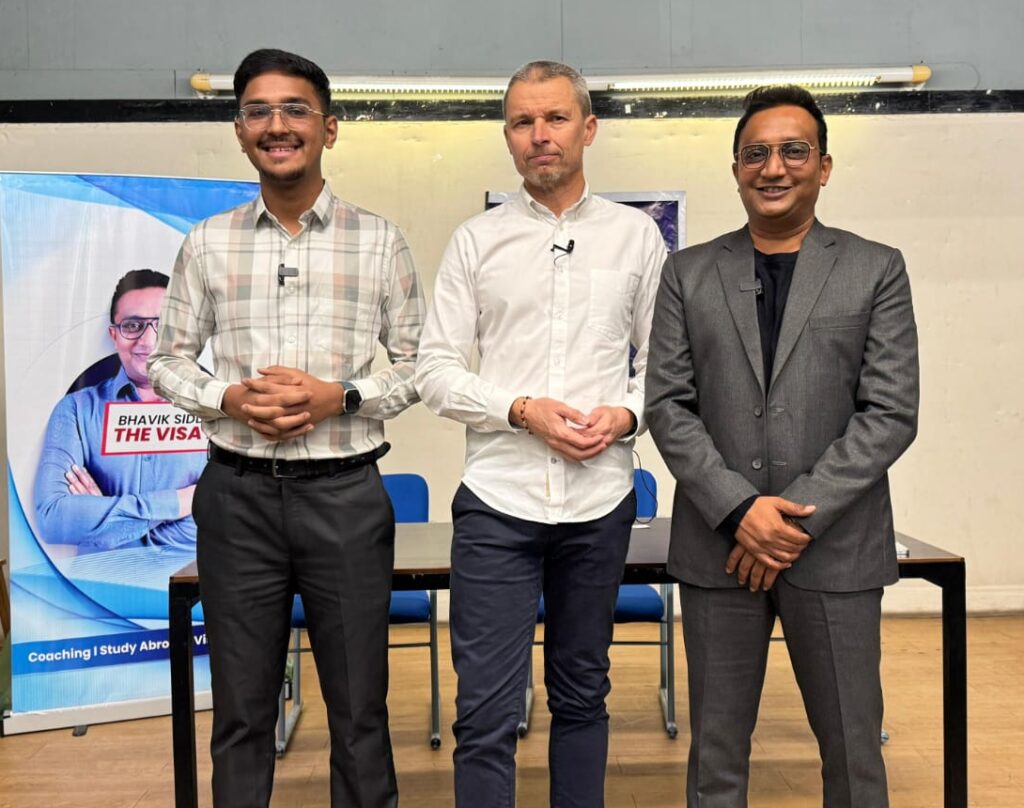 Representatives from European institutions provided first-hand guidance on admission procedures, academic choices, campus life, accommodation, and long-term career pathways. The seminar featured insights from Bhavik Siddhpura (The Visa Man), Director – First Step Overseas, Krejci Milos, Head of School – School of Business, Prague, and Krish Mishra, Admission Representative.