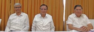 Sumati Prakash Jain, A Jainism scholar, Rajendra V Shah, Sub Judice Trustee, Rajendra Kamdar, Trustee and others were present to interact with the media.