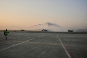 arrival, a time-honoured aviation tradition marking NMIA’s first commercial touchdown and