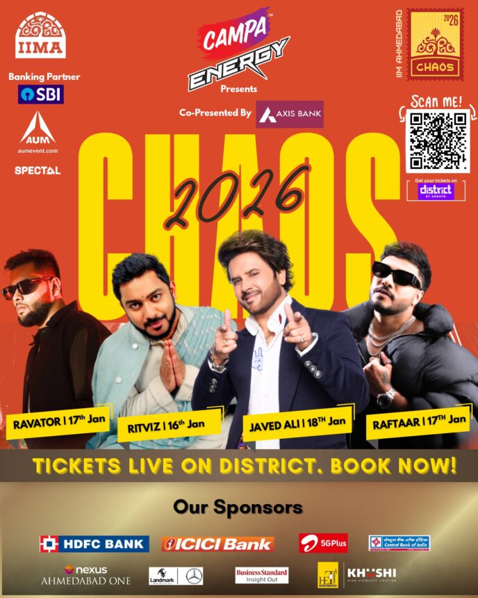 The Indian Institute of Management Ahmedabad (IIMA) is set to host the 31st edition of its most sought-after annual cultural festival, CHAOS 2026, from January 16 to 18, 2026, at the iconic IIMA campus. Since its inception in 1996, Chaos has evolved into one of India’s most prestigious B-school cultural festivals, drawing participation from top institutions across the country.