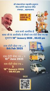 Shri Sankatmochan Mahavir Mandir will grandly inaugurate its third Ram Roti Seva Rath on Sunday, January 18, 2026, at 6:45 pm. The inauguration marks another significant step in the temple’s ongoing mission of service and devotion.