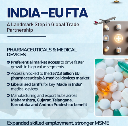 The FTA is also expected to provide a boost to Indian traditional medicine services and practitioners. In the EU Member States where regulations do not exist, AYUSH practitioners will be able to provide their services using the professional qualifications they gain in India. “For the pharmaceutical sector, the FTA delivers structural competitiveness. Near-zero tariff access significantly strengthens the position of Indian formulations, APIs, and value-added medicines in the EU, a development that is particularly consequential for India’s pharma MSMEs, many of whom possess strong quality capabilities but face cost and access barriers in highly regulated markets,” added Namit Joshi, Chairman – Pharmexcil.