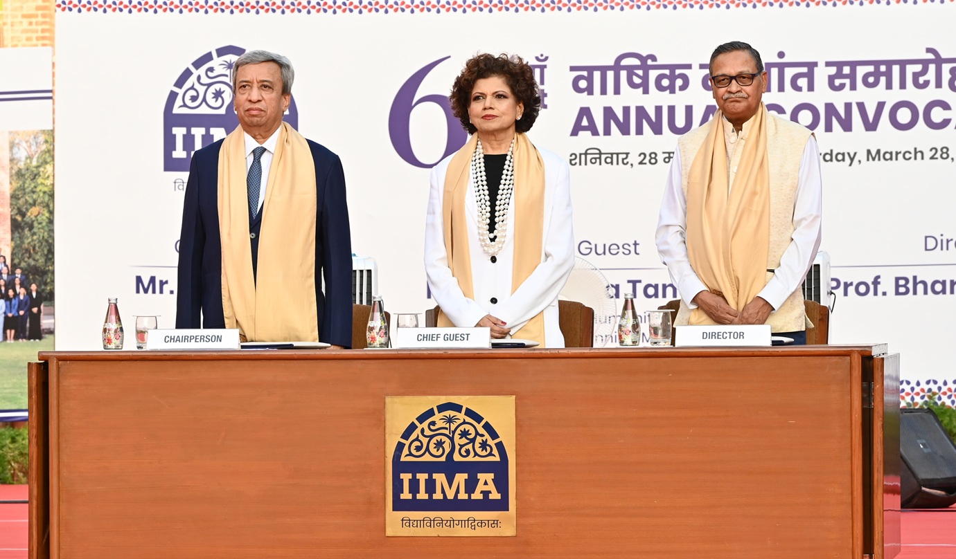 - A total of 629 students were awarded their degrees at the 61st Annual Convocation ceremony of the Indian Institute of Management Ahmedabad (IIMA) held on 28th March the iconic Louis Kahn Plaza on the campus. Chandrika Tandon, Business Leader, Humanitarian, Grammy-Award Winning Musician, and alumna of IIMA’s PGP Class of 1975, graced the occasion as the Chief Guest.